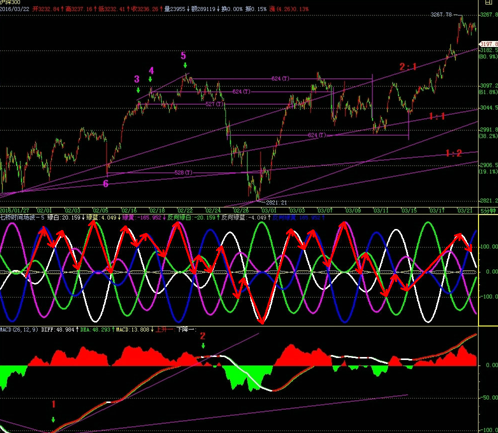 以5分钟级别沪深300为例,这是江恩当年未曾接触的领域,这是短线杠杆品种的世界,是期货的天地,是超短线的殿堂。