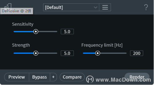 一旦RX Advanced独享,De-plosive就能消除爆破声的刺耳声音。当用p,b,k和其他辅音开头的单词后空气击中麦克风时会出现这些爆音。