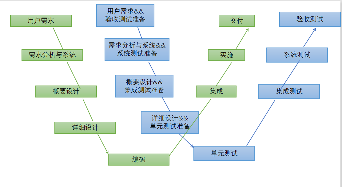 - 明确的标注了测试过程中存在的不同类型的测试,并且清楚的描述了各测试过程与开发过程期间各阶段的对应关系。