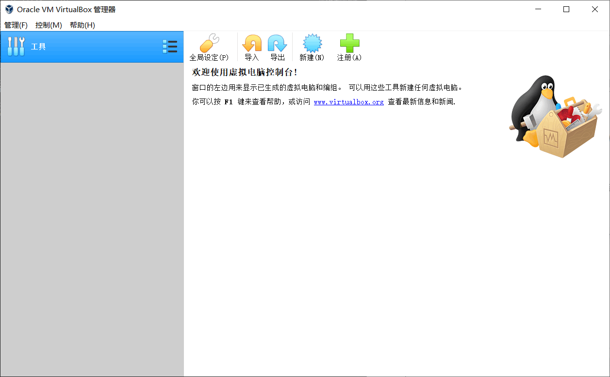 - 第八步,这时便会启动Oracle VM VirtualBox虚拟软件,启动界面如下图所示。