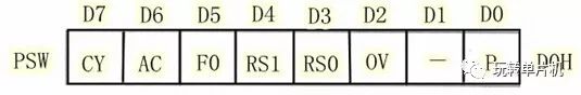 PSW(Program StatusWord)全称为程序状态字标志寄存器,是一个8位寄存器,位于单片机片内的特殊功能寄存器区,字节地址D0H,用来存放运算结果的一些特征,如有无进位、借位等。使用汇编编程时PSW寄存器很有用,但在利用C语言编程时,编译器会自动控制该寄存器,很少人为操作它,大家只需做简单了解即可。其每位的具体含义