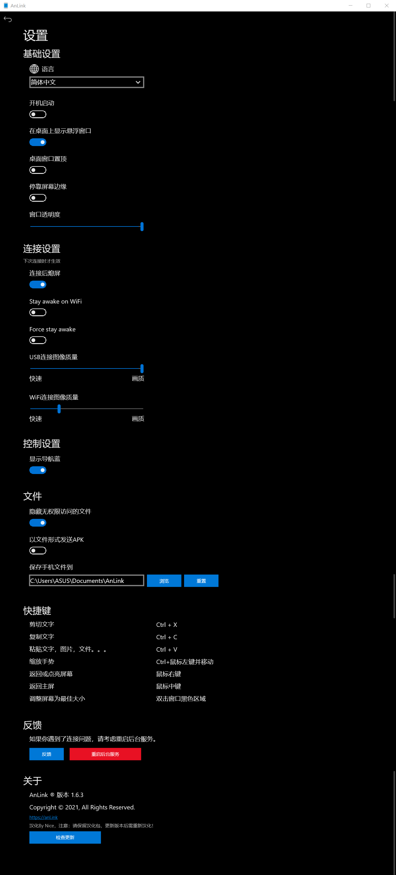 总的来说,Anlink 的特点是免费、易用、稳定,对手机和电脑品牌没有要求,用来上班时在电脑上处理手机信息、使用手机 APP 办公或利用跨屏剪贴板来处理文本,电脑手机文件互转,可以节省个U盘,电脑手机都可以阅读和打开文件查看,都是值得推荐的。最新更新的Anlink支持挂载语言包达到汉化的目的,相信以后会有更多的功能更新,截止目前仅仅1周时间AnLink就又更新了,或许过不了多久就会官方自带中文版了。对于多屏协同,效率办公来说是一个不错的新选择。