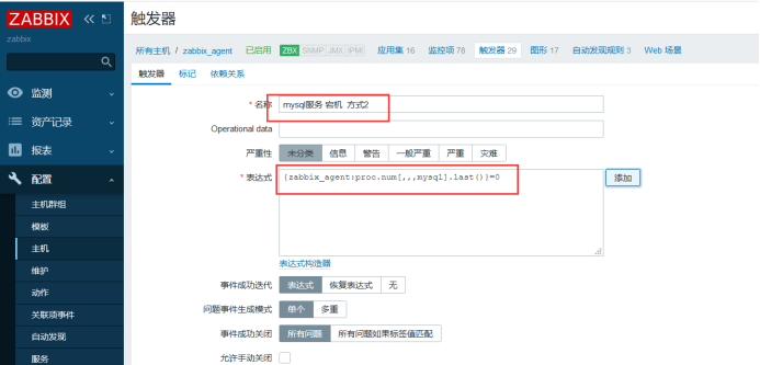 配置 —> 主机: 191.168.1.15 —-> 触发器 —-> 创建触发器