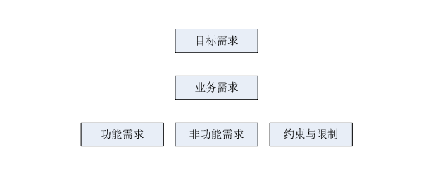 - 目标需求:反映组织机构或客户对系统和产品提出的高层次的目标要求,其限定了项目的范围和项目应达到的目标;