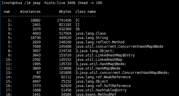 1.输出中[C对象占用Heap多,往往跟String有关,String其内部使用final char[]数组来保存数据的。