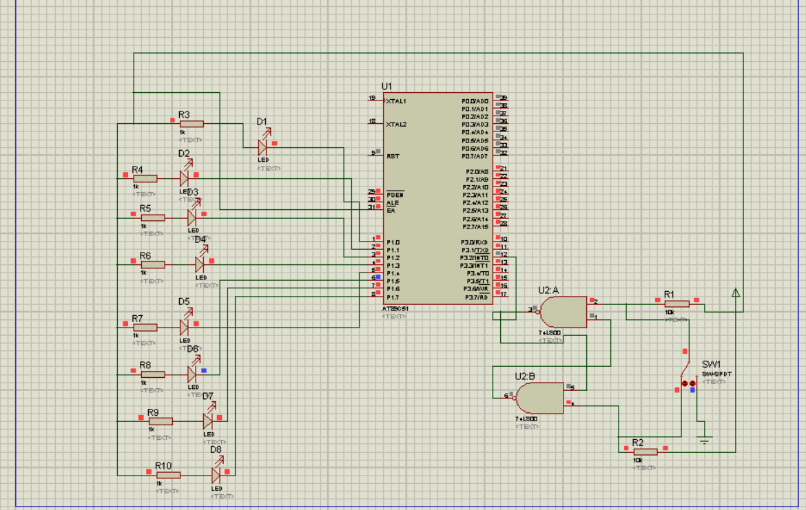 当点击开关,LED灯从上到下依次亮起来。