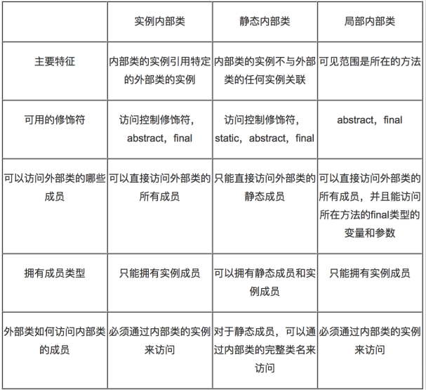 4):局部内部类和实例内部类,可以访问外部类的所有成员.