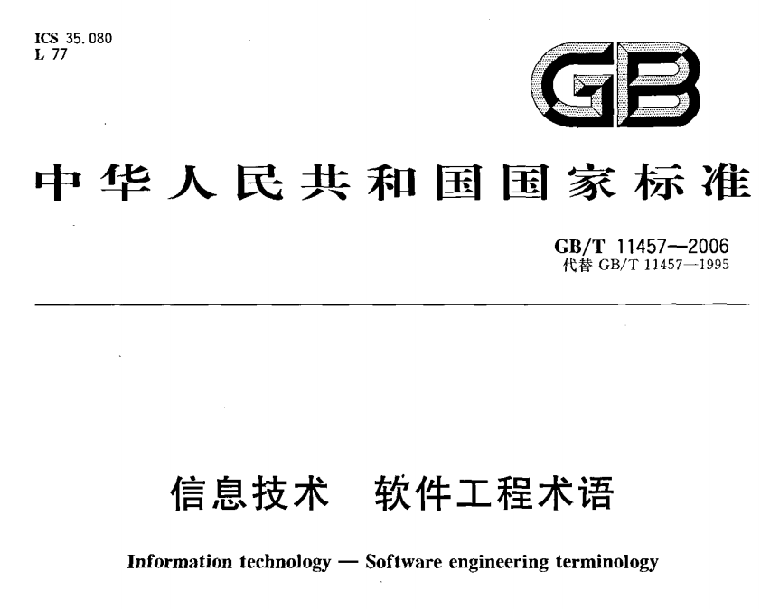 GB/T 11457-2006 软件工程术语 规定了软件工程领域中的1859个中文术语,以及每个中文术语对应的英文词,还对每个术语给出了一个或一个以上的定义。标准的最后附有英文索引和中文索引。与项目管理相关的术语摘录如下。