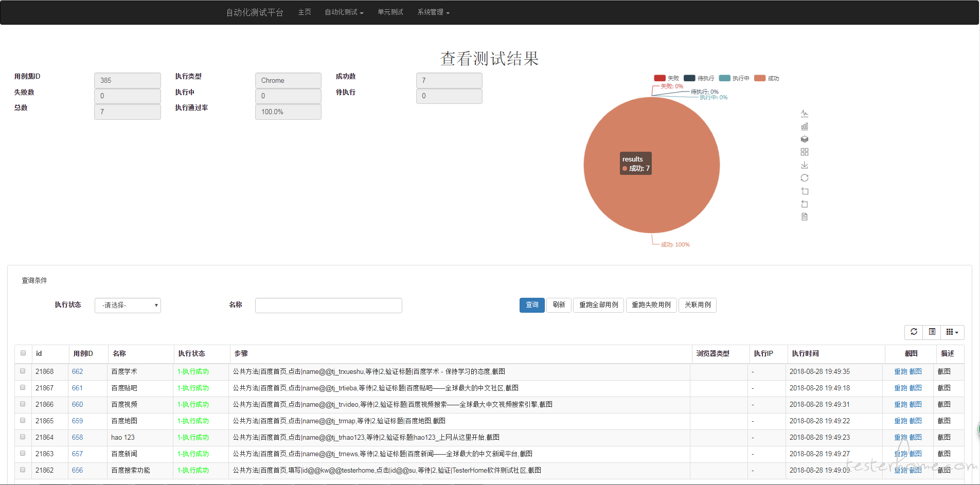 公共方法 | 百度首页,填写 |id@@kw@@testerhome,点击 |id@@su,等待 |2,验证 |TesterHome 软件测试 区,截图