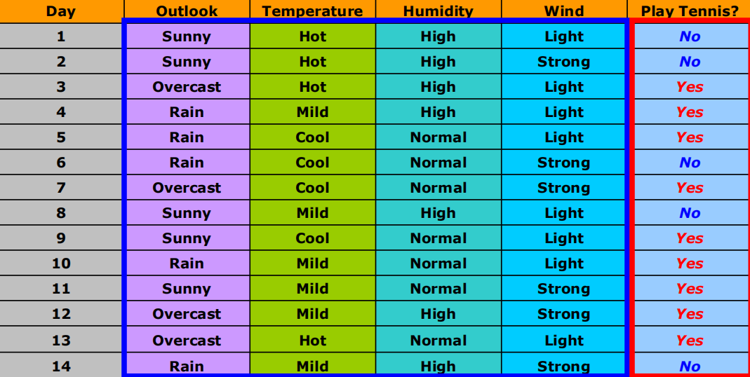 (1)从信息增益的角度考虑,Outlook和Humidity哪个作为划分属性,给出具体计算过程