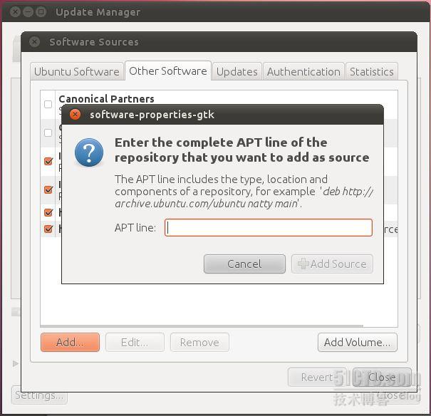 标签页,点击左下角的add,将获得的PPA地址粘贴进来。(如下图)