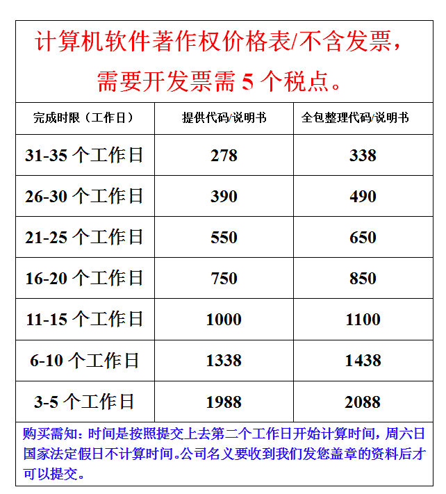 提供 软件名称,代码,说明文档,邮寄盖章材料(此图片为淘宝截图,具体价格不同店家有所差异)。