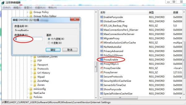 解决办法:运行注册表regedit,定位到[HKEY_CURRENT_USERSoftwareMicrosoftWindowsCurrentVersionInternet Settings]