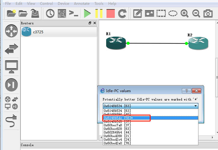 (7)改变Idle值,右击路由器,再点击Idle-PC,选带*的最优值。降低CPU使用率。