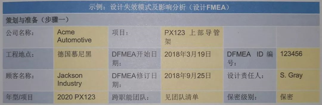 图2.1-1填好的 DFMEA表头示例“策划和准备”步骤