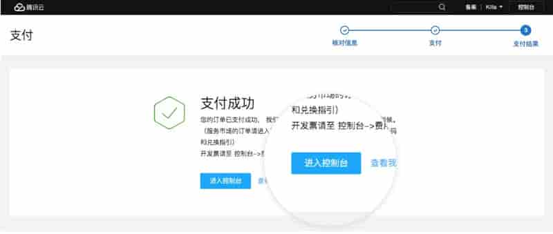 1购买完成后,点击进入控制台