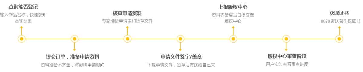 提示:重庆版权、浙江版权、山东版权、上海版权、广东版权 的发证时间均为35工作日左右;国家版权局普通登记发证时间一般是五六十工作日左右;具体以版权局实际进度为准完善申请资料后,专家3个工作日内完成签章文件