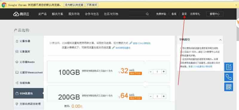 二:点击登录你没有购买过云服务器产品的账户