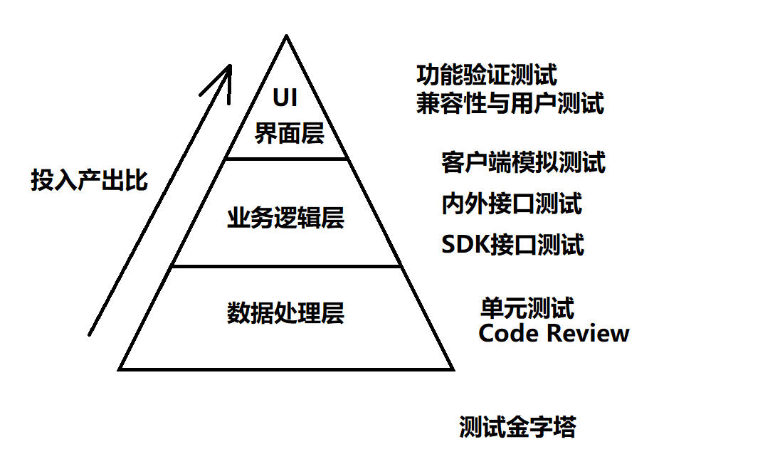 测试金字塔:从下到上定位问题越来越困难、从下到上测试效率越来越低