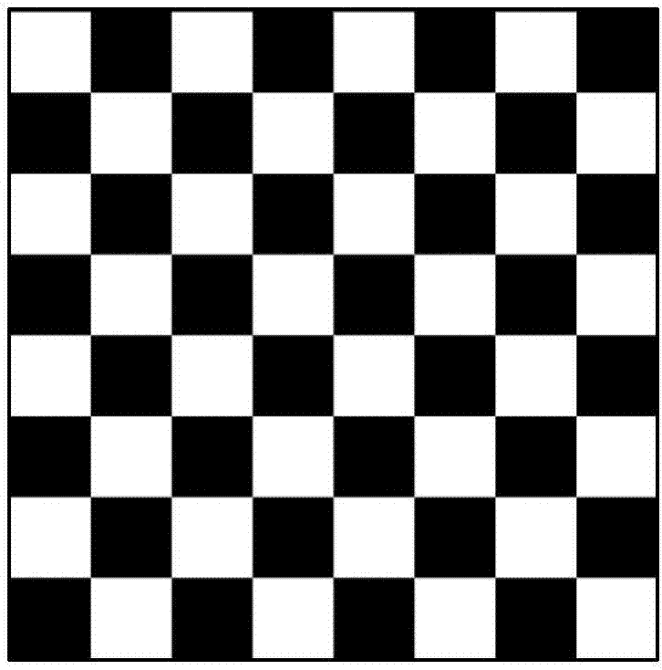 利用Matlab软件控制产生Hadamard结构散斑,通过数字微镜阵列设备(DMD)投射,结构光斑如图2所示。结构光斑发射源1发出光经过分束器2分成两束:光束I经过待成像物体3(本实施例中物体为8×8像素的字母F)反射的光波被桶探测器4接收;双掷开关5选择连通外调制器7,桶探测器4的电信 反馈作用到外调制器7上,实现对光束II的外调制,完成光计算。反射屏9用于显示调制后的散斑,经过光学信息处理系统8带通滤波的像增强处理。人眼(低速感光物体10)在观察时会自动进行二阶关联函数计算,得到物体3的像。用CCD模拟人眼可以得到物体的像如图3所示,分辨率能够无限高。