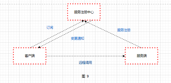 如图 9,服务提供方(provider)启动的时候把自己的地址上 给服务注册中心(如上图所说的API 关),这就是服务注册。服务调用方(consumer)订阅服务变更通知,动态地接收服务注册中心推送的服务地址列表,服务调用方根据接收到的服务地址列表远程调用相应的服务。