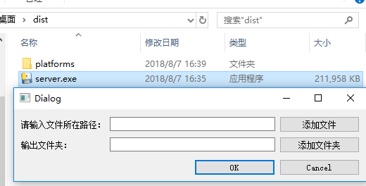 然后重新封装一次exe文件,再将文件夹完整的拷贝到我们的exe文件旁边,然后双击: