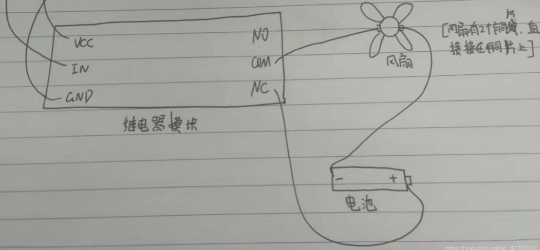 硬件:Arduino、继电器、直流电机、风扇、1.5V电池(因为直接接在Arduino上,电压会不足)、杜邦线若干、面包板